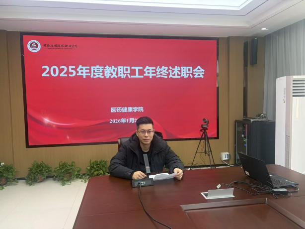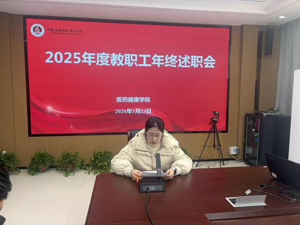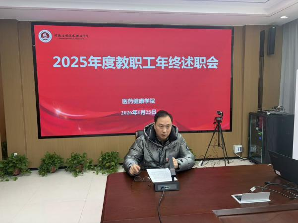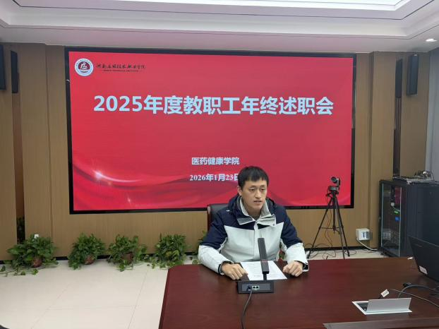 2026年1月23日,医药健康学院2025年度教职工年终述职会在学院第一会议室隆重召开。全体专兼职教师、辅导员齐聚一堂,一同复盘年度工作成效,梳理育人工作思路,共话学院发展新蓝图,凝聚起推动专业建设与人才培养提质增效的奋进力量。学院党总支书记张亮、院长李元元参加会议。会议由学院党总支副书记郑言主持。